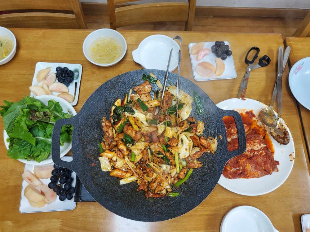 정성들여 양념에 재운~ 닭갈비 맛에 빠져 모두들 행복한 점심식사 즐겼습니다.