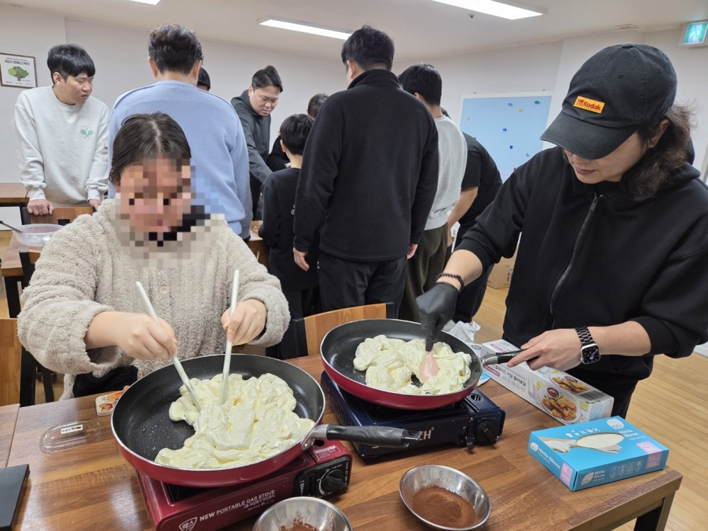 오늘은 청목회 자원봉사자분들과 두쫀쿠 만들기를 하였습니다. 재료들을 직접 준비해 주시고 만들기 활동에 함께