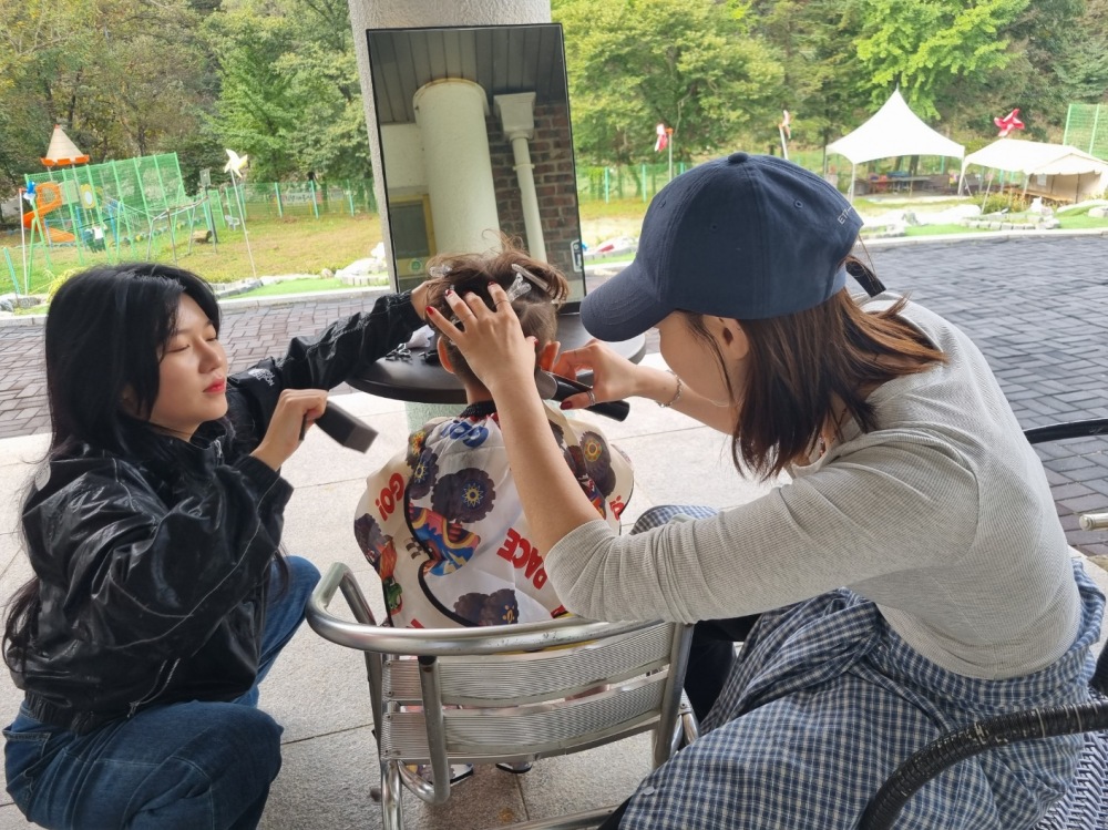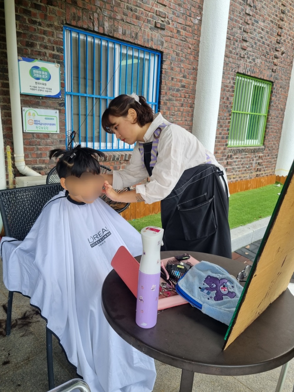 피치블라썸 이미용 봉사자분들이 와 주셔서 아이들의 머리를 예쁘게 손질해 주셨답니다.